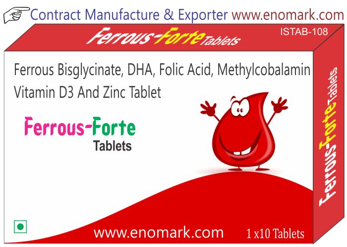 Ferrous Bisglycinate DHA Folic Acid Methylcobalamin Vitamin D3 and Zinc Tablet